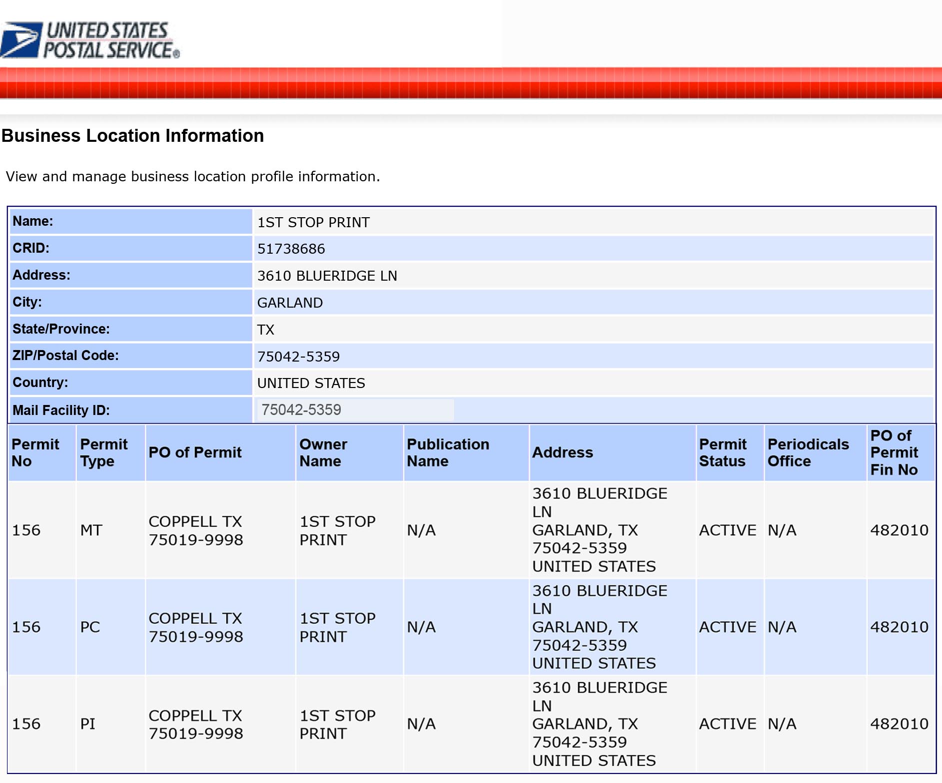 1ST STOP PRINT PERMIT INFORMATION